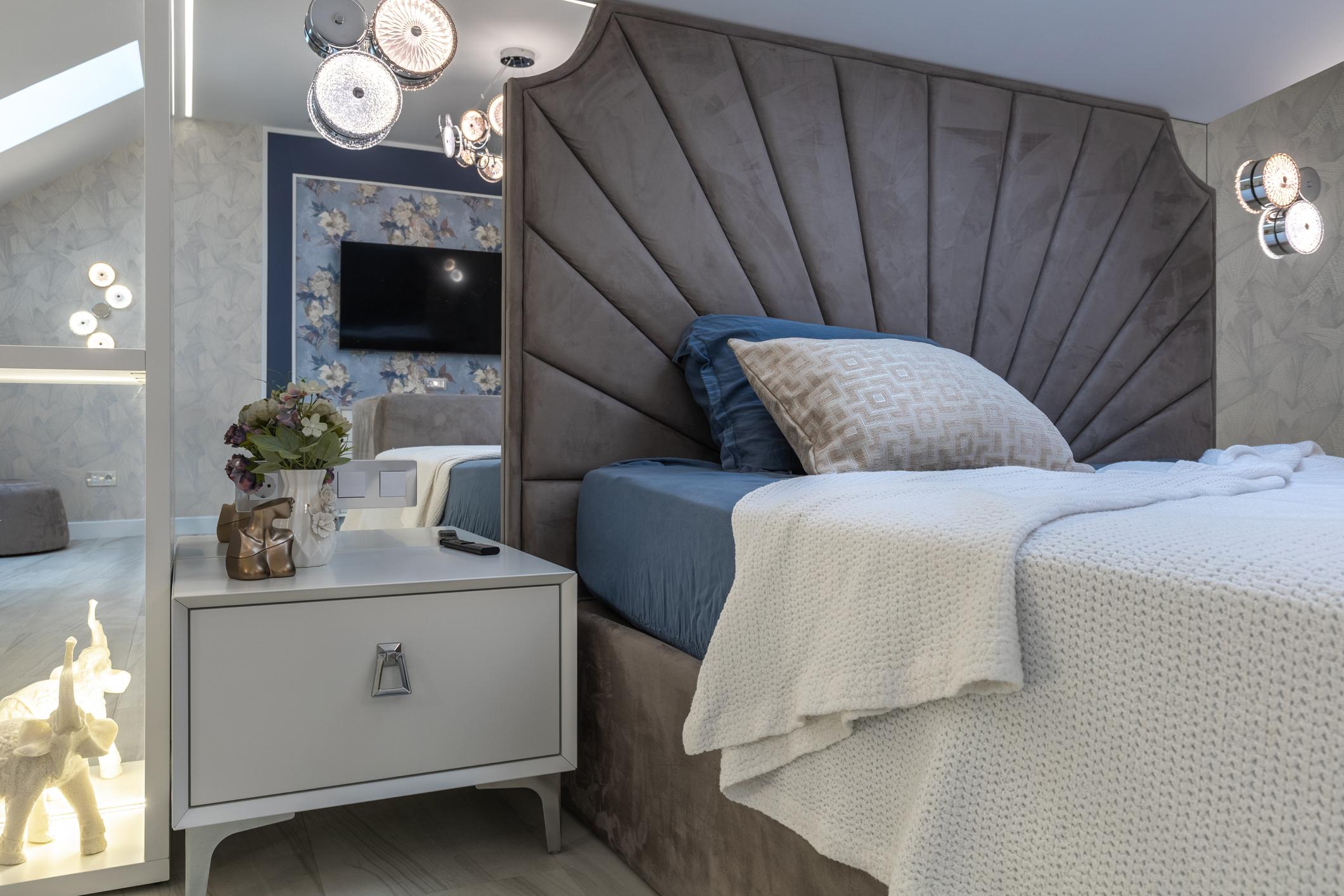 Elegant padded headboards covered in premium fabrics or leather.